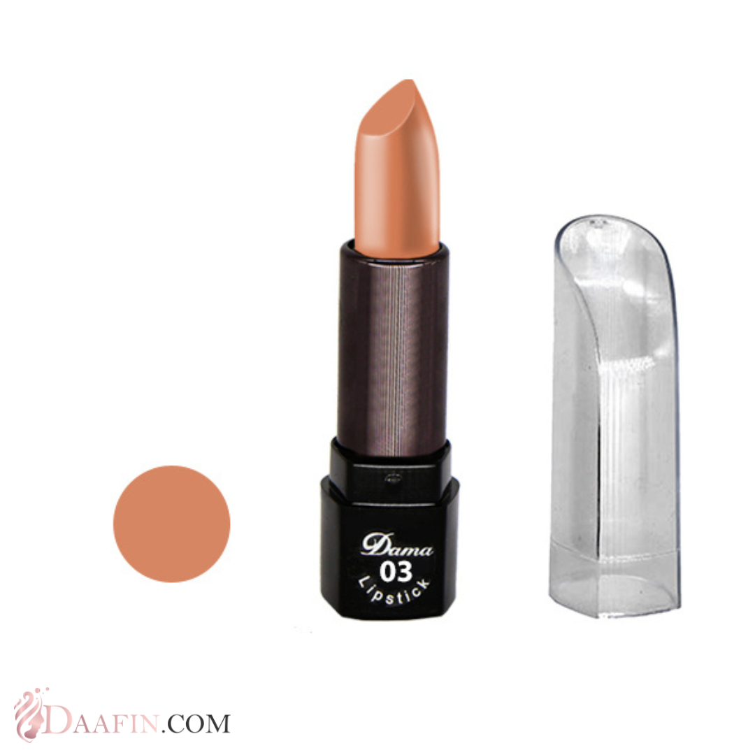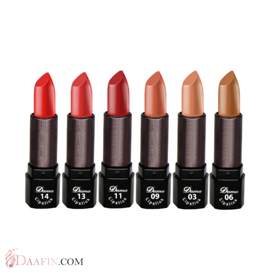 نکته: رژ لب جامد داما بافتی کرمی و سبک دارد، بنابراین بهتر است ابتدا یک لایه نازک زده شود و سپس در صورت نیاز لایه دوم برای شدت رنگ بیشتر اضافه گردد.