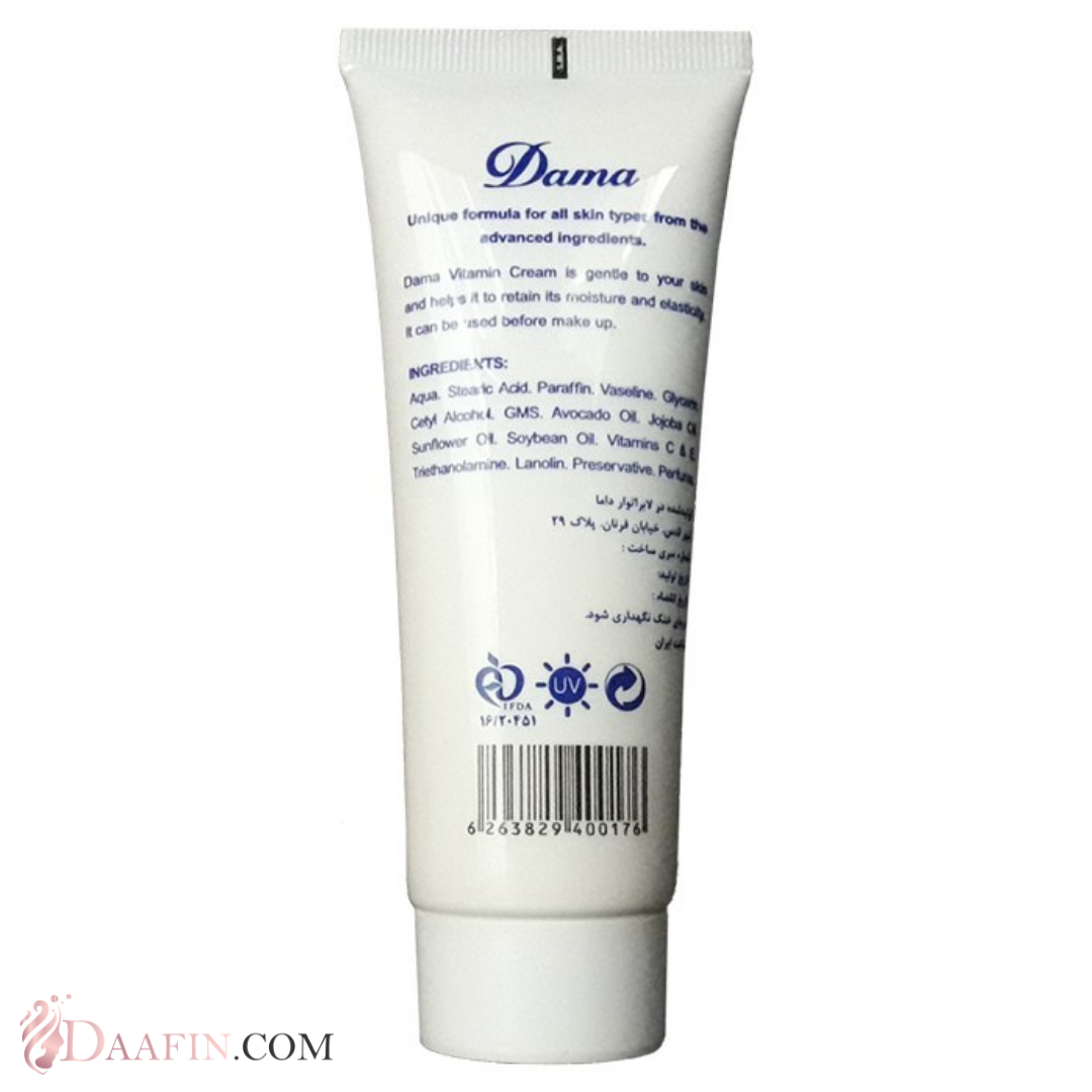 کرم مرطوب کننده ویتامینه داما مدل تیوپی دارای ویژگیهای فنی زیر است: