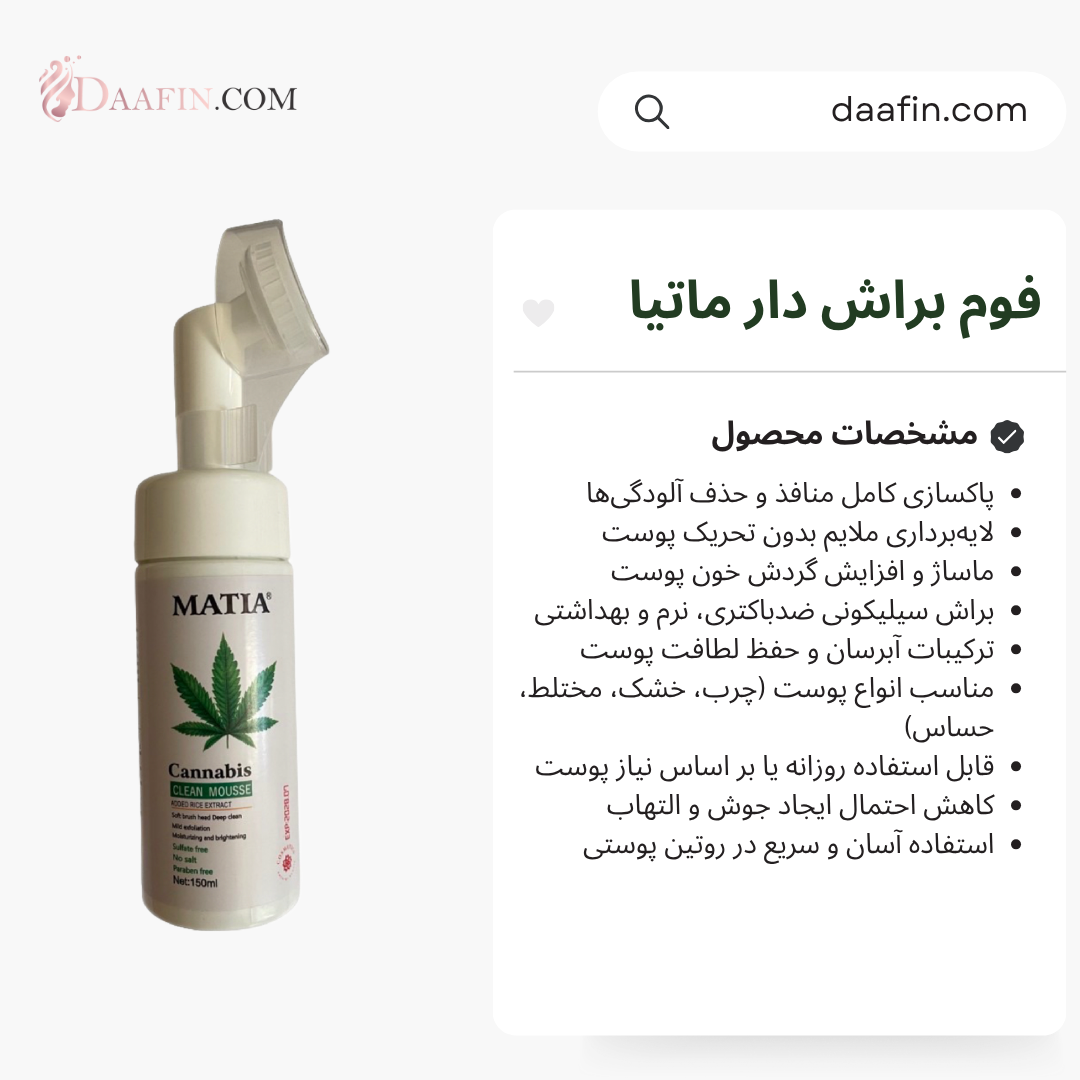 بیشتر ژلهای شستشو احساس کشیدگی و خشکی پوست ایجاد میکنند، اما فوم براشدار ماتیا با ترکیبات آبرسان، لطافت بعد از شستشو را حفظ میکند.