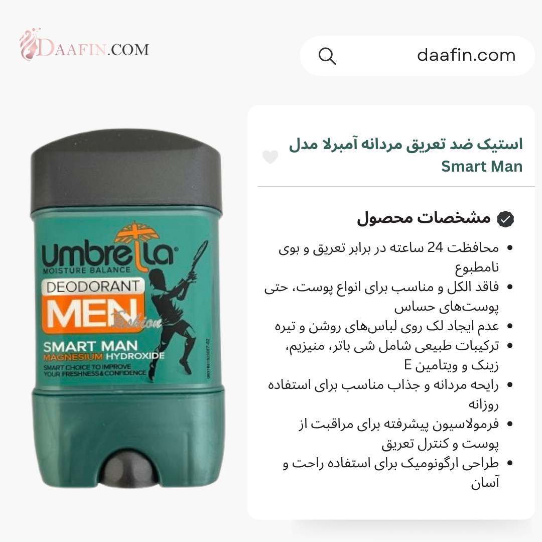 ویژگیهای کلیدی استیک ضد تعریق آمبرلا مدل Smart Man